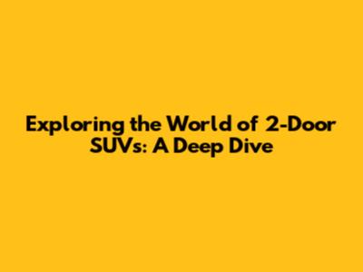 Exploring The World Of 2-Door SUVs: A Deep Dive