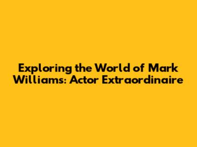 Hey guys! Ever wondered about the life and career of the amazing Mark Williams? This article dives deep into the world of this talented actor, exploring his diverse roles, memorable performances, and the impact he's had on the entertainment industry. Buckle up, because we're about to take a fun ride through the career of a true icon!