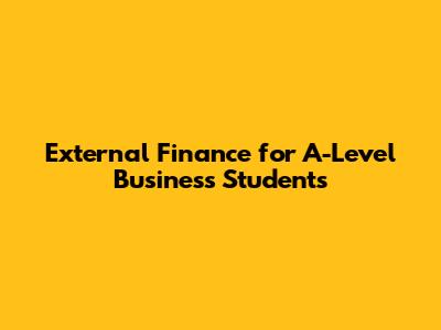 External Finance For A-Level Business Students