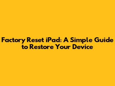 Factory Reset IPad: A Simple Guide To Restore Your Device