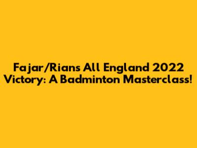 Hey badminton fanatics! Let's dive deep into the electrifying victory of Fajar Alfian and Muhammad Rian Ardianto, or as we affectionately know them, Fajar/Rian, at the prestigious All England Open 2022! This wasn't just any win; it was a statement. A declaration that the young Indonesian duo had arrived and were ready to dominate the world of men's doubles badminton. The journey to the top was paved with sweat, strategy, and sheer determination. This article is your ultimate guide, breaking down their incredible performance, the key moments, and the impact of this historic win. We'll explore the dynamic partnership of Fajar and Rian, their road to the final, and what made their victory so special. So, buckle up, grab your rackets, and let's relive the magic!
