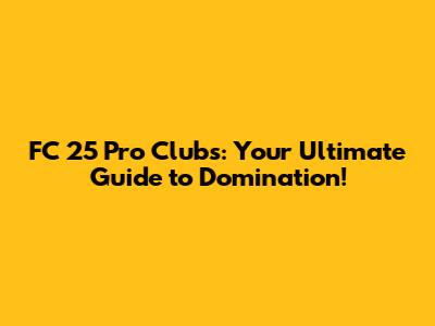 FC 25 Pro Clubs: Dominate The Pitch With This Guide!