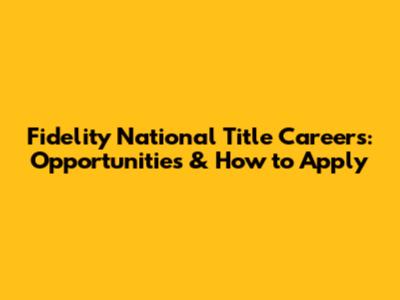 Fidelity National Title Careers: Opportunities & How To Apply