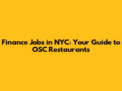 Finance Jobs In NYC: Your Guide To OSC Restaurants