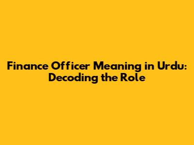 Finance Officer Meaning & Role In Urdu: Your Guide