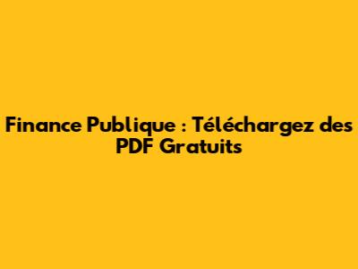 Finance Publique : Téléchargez Des PDF Gratuits