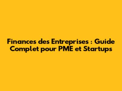 Finances Des Entreprises : Guide Complet Pour PME Et Startups