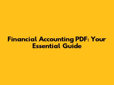 Financial Accounting PDF: Your Essential Guide