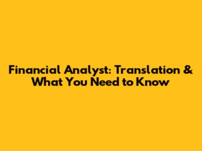 Financial Analyst: Translation & What You Need To Know