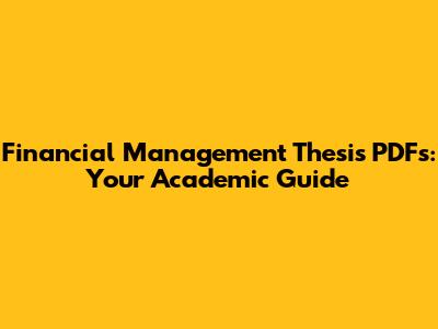Financial Management Thesis PDFs: Your Academic Guide