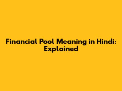 Financial Pool Meaning In Hindi: Explained