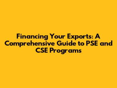 Financing Your Exports: A Guide To PSE And CSE Programs