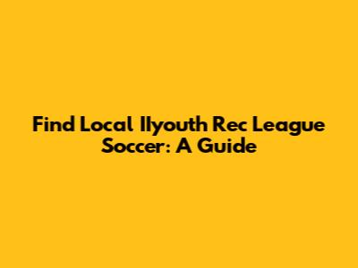 Find Local IIyouth Rec League Soccer: A Guide