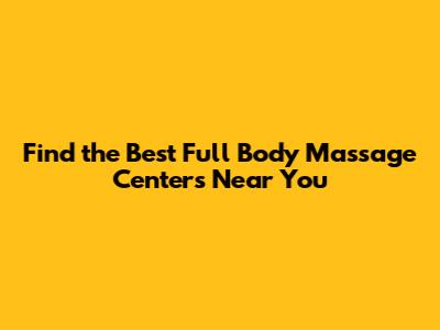 How to Find Full Body Massage Centers Near You