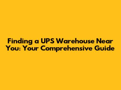 Find UPS Warehouses: Your Local Guide