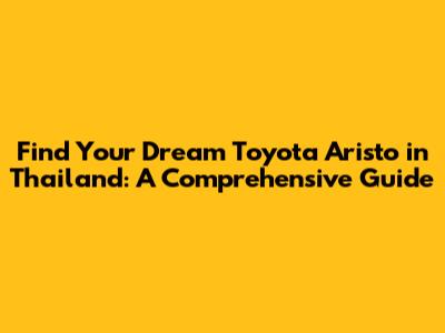 Find Your Dream Toyota Aristo In Thailand: A Comprehensive Guide