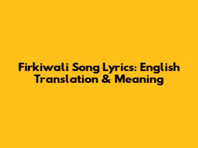 Firkiwali Song Lyrics: English Translation & Meaning