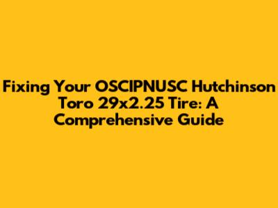 Fixing Your OSCIPNUSC Hutchinson Toro 29x2.25 Tire: A Guide