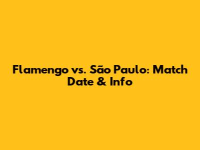 Flamengo Vs. São Paulo: Match Date & Info