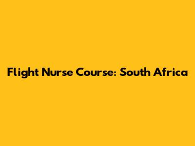 Flight Nurse Course: South Africa