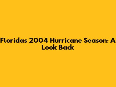 Florida's 2004 Hurricane Season: A Look Back