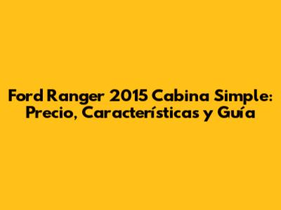 Ford Ranger 2015 Cabina Simple: Precio, Características Y Guía