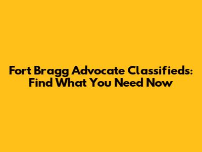 The Fort Bragg Advocate classifieds are a valuable resource for anyone living in or around the Fort Bragg community. Whether you're looking for a job, a place to live, a new car, or just some furniture, you can find it all in the classifieds. By following the tips and guidelines outlined in this article, you can use the classifieds safely and effectively to find what you need and connect with your community. Happy hunting, and stay safe out there!