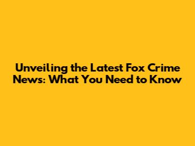 Unveiling the Latest Fox Crime News: What You Need to Know