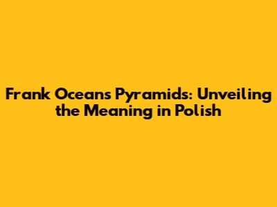 Frank Ocean's Pyramids: Unveiling The Meaning In Polish