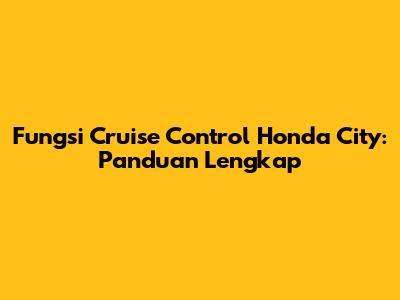 Fungsi Cruise Control Honda City: Panduan Lengkap