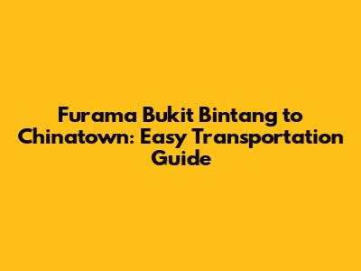 Furama Bukit Bintang To Chinatown: Easy Transportation Guide