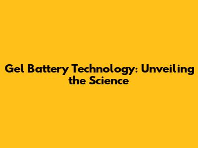 Decoding Gel Battery Technology