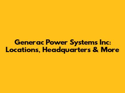 Generac Power Systems Inc: Locations, Headquarters & More