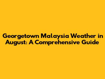 Georgetown, Malaysia: August Weather Guide