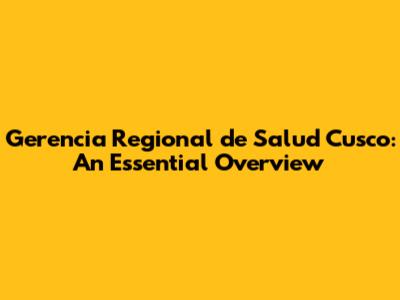 Gerencia Regional De Salud Cusco: An Essential Overview