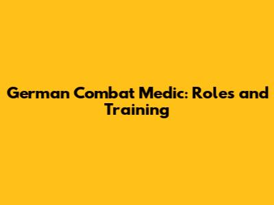 German Combat Medic: Roles And Training