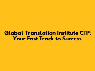 Global Translation Institute CTP: Your Fast Track To Success
