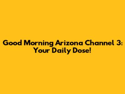 Good Morning Arizona Channel 3: Your Daily Dose!