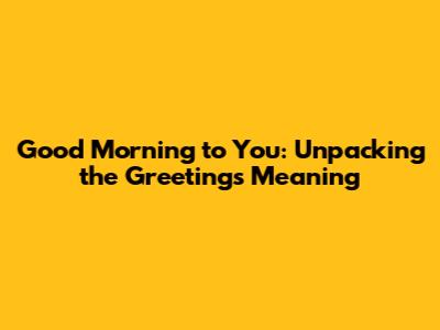 Hey guys! Ever wondered about the simple phrase "Good Morning to You"? It’s a common greeting, but have you truly considered its meaning and how we use it? This article breaks down the phrase, exploring its core significance, cultural implications, and variations in usage. We'll dive deep into its essence, looking at where it came from, how it's used globally, and why it remains a timeless expression of goodwill. Understanding this basic greeting goes beyond just knowing the words; it's about appreciating the subtle nuances of communication and connection. So, let’s get started and unravel the mystery behind the morning greeting!