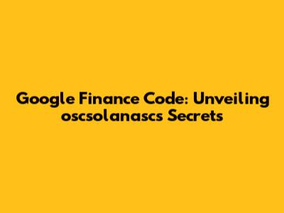 Google Finance Code: Unveiling Oscsolanasc's Secrets