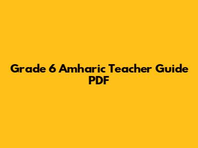 Grade 6 Amharic Teacher Guide PDF
