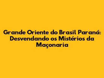 Grande Oriente Do Brasil Paraná: Tudo O Que Você Precisa Saber