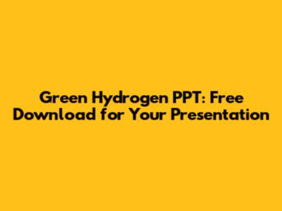 Green Hydrogen PPT: Free Download For Your Presentation