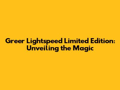 Greer Lightspeed: A Deep Dive Into The Limited Edition
