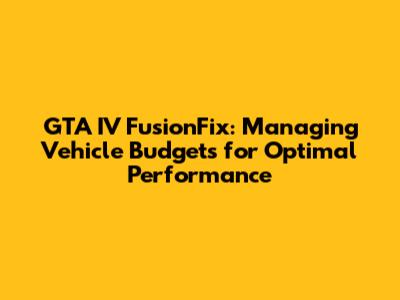 Hey guys! Ever wondered how to make your GTA IV run smoother with FusionFix, especially when it comes to handling all those sweet rides? Well, let's dive into the nitty-gritty of vehicle budgets! Understanding and tweaking these settings can seriously boost your game's performance and reduce those annoying stutters and crashes. So, buckle up, and let's get started!