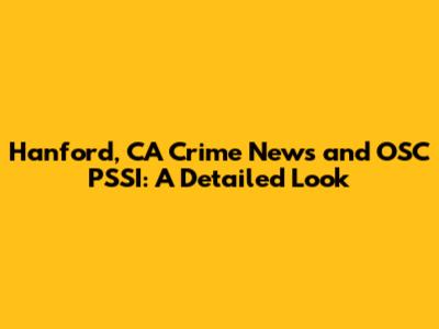 Hanford, CA: Crime News And OSC PSSI Insights