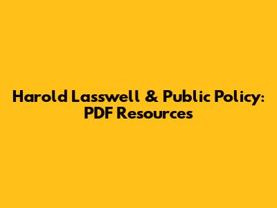 Harold Lasswell & Public Policy: PDF Resources