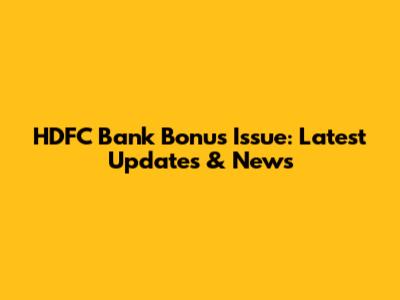 HDFC Bank Bonus Issue: Latest Updates & News