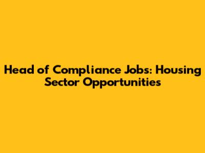 Head Of Compliance Jobs: Housing Sector Opportunities