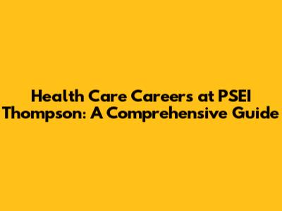Health Care Careers At PSEI Thompson: A Comprehensive Guide